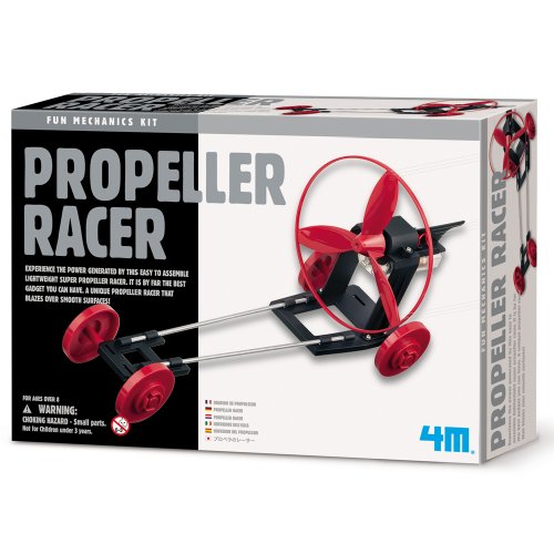 The Propeller Racer Kit lets you build a motorized racing car that provides its own wind power! Construct the 4-wheeled chassis, seat the battery-powered motor and propeller, flick the switch, and off it goes. Be sure to enlarge the inset photo to see a diagram of the cool kit parts included. Comes with clearly illustrated assembly instructions. Every science class should be this much fun!