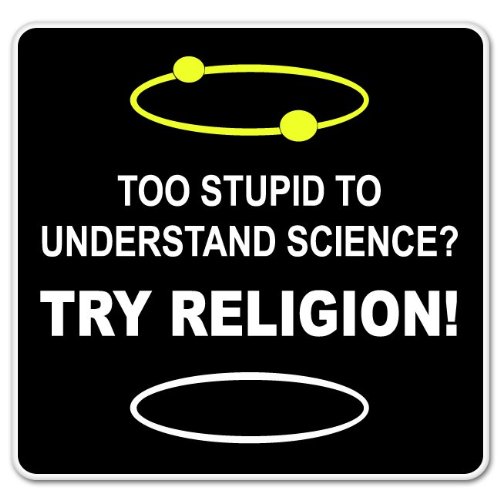 Anti-Religion Stupid Science Funny car bumper sticker 4" x 4" Review